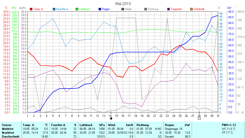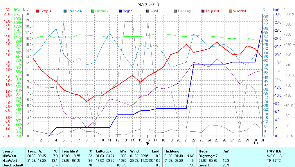Monatsübersicht Temperatur