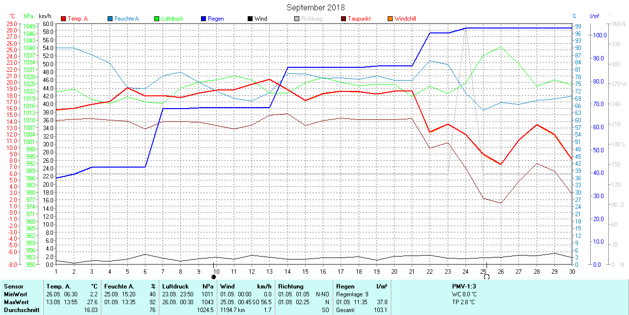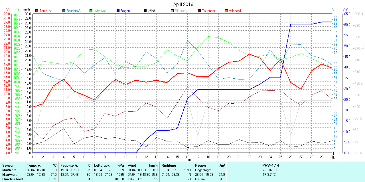 Monatsübersicht Temperatur