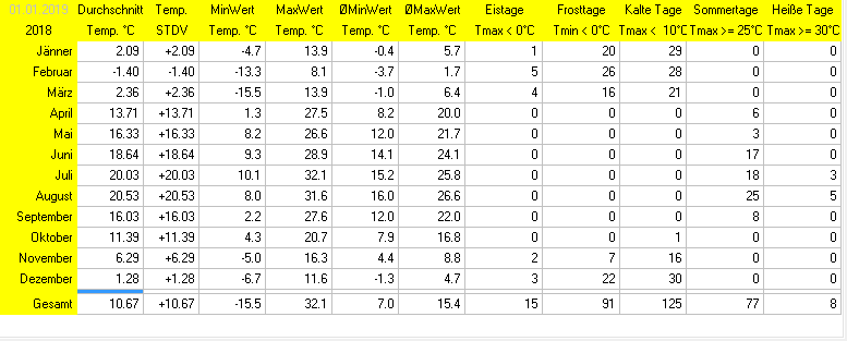 Monatsübersicht gesamt
